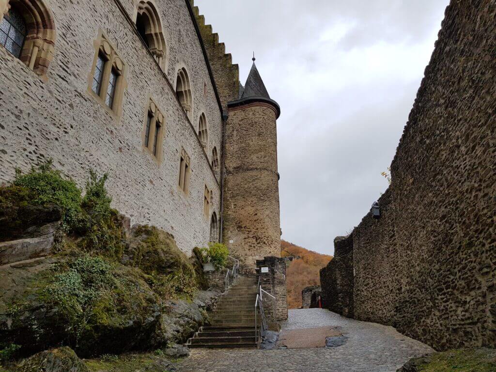 Tampoco hay que pasar por alto la capilla del castillo. Una estructura que ocupa dos niveles del castillo. El inferior permitía a los vecinos de pueblo participar en los oficios religiosos mientras los nobles se sentaban en el nivel superior, con el conde en un pequeño balcón. La parte inferior es de estilo románico y la superior, pintada de intensos colores, de estilos renano.