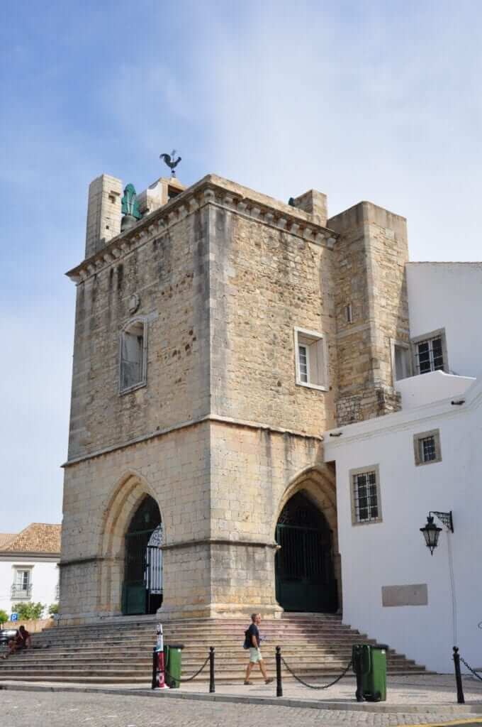 Este arco, cerca de la Marina de Faro, ocupa el lugar de una antigua puerta medieval. Su aspecto actual data del siglo XIX y en la parte superior se puede ver una escultura de Santo Tomás de Aquino. Al cruzar el arco no hay que dejar de mirar hacia atrás para admirar la puerta árabe que formaba parte de la antigua muralla musulmana. Esta puerta de Faro es un ejemplo excepcional en Portugal de arquitectura árabe por su estado de conservación y por haberse mantenido durante siglos en el lugar en el que fue levantada.