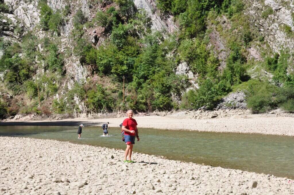 Pues mira, mis ojos suelen mirar siempre con el mejor espíritu y soy de las personas que ven en todo un lado bueno. Pero por más que lo intenté, caminar dos horas sobre piedras, con un calzado nada adecuado para ello, para pasar apenas media hora en el tan deseado río Shala no nos mereció la pena. Era tan incómodo que mucha gente se daba la vuelta a mitad de camino, no todo el mundo podía aguantar sin saber realmente el tiempo que quedaba para llegar y siempre mirando el reloj calculando el tiempo para regresar a la barca que nos llevaría de regreso por el Lago Koman. Así que si estáis a tiempo llevar un calzado que os permita recorrer el camino pedregoso y así, además de no terminar doloridos, tardaréis menos en hacer la ruta.