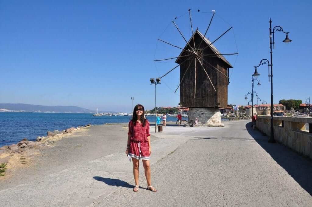 Se encuentra más o menos en la mitad del istmo que une la ciudad nueva de Nesebar con su casco histórico. Es una llamativa construcción de madera de la época del Renacimiento Nacional y su función era moler el grano con la fuerza del viento. Lo mismo que esos molinos que tenemos en tierras manchegas.