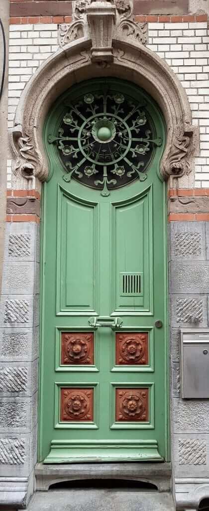 Muy cerca de la anterior plaza, en la esquina de Biezekapelstraat, se puede contemplar uno de edificios art nouveau que ver en Gante. Choca un poco encontrar junto a edificios medievales este tipo de construcciones. Ésta en concreto llama la atención por sus cuatro pisos, las grandes ventanas y esas puertas circulares rematadas con motivos de hierro forjado.