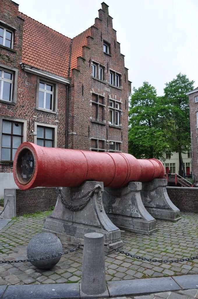 La verdad es que podéis saludar a Margarita, pero ella nunca os va a responder. La razón es que ésta loca es un cañón al que los ganteses han bautizado con ese nombre. Pesa nada menos que 12 toneladas ¡y jamás se ha disparado! Se hizo para los duques de Borgoña en el siglo XV siendo su nombre original Dulle Griet. Desde hace algunos años está tapado, ya que se había convertido en una papelera horizontal.