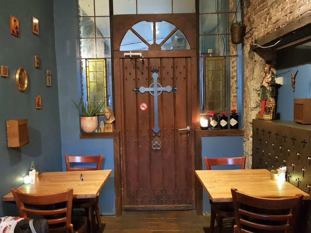 Hay un agradable e informal restaurante a poca distancia del Puente de San Miguel. Su nombre es ‘t Oud Clooster y ocupa lo que fue un antiguo convento. Decorado con imágenes se santos y velas, sus comedores en dos niveles resultan perfectos para tomar una copa, una cerveza o degustar deliciosos platos de pasta, tentempiés o sabrosa pasta. Un local con encanto perfecto para una última cena (en Gante, esperamos que haya muchas otras cenas en otras ciudades).