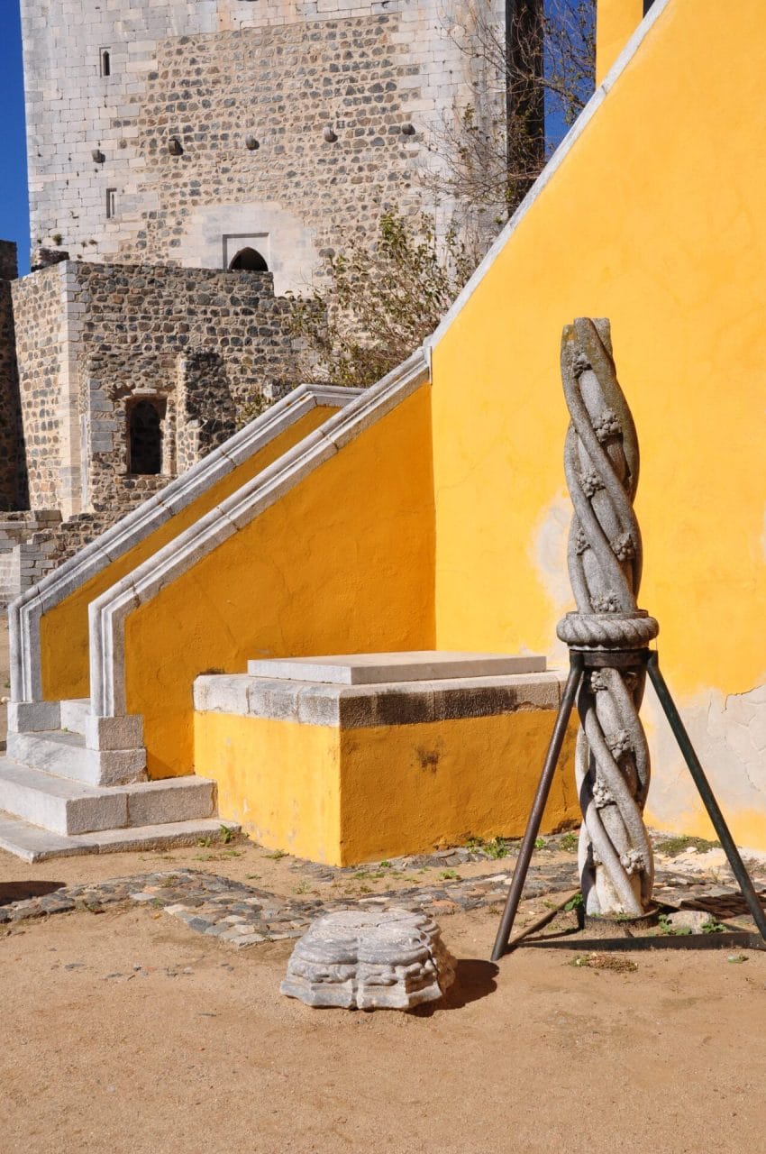 Desde la anterior iglesia ya se ve el castillo de la ciudad, una estructura pentagonal con seis torres. Entre ellas destaca la torre del homenaje, considerada una de las más bellas de Portugal. Fue construido por el rey Dom Dinis a principios del siglo XIV sobre una fortificación romana. Siglos más tarde se realizaron algunas modificaciones y se añadieron elementos decorativos de estilo manuelino.