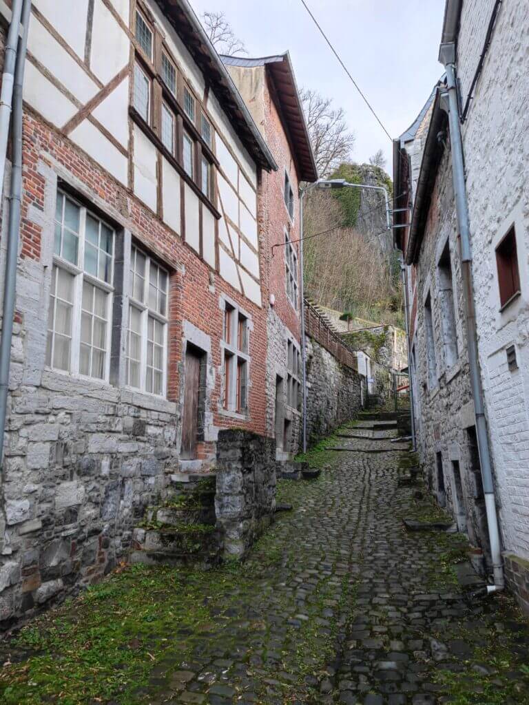 Una de ellas es el Impasse de Couret, una calle que conserva el trazado medieval, hoy sin salida, y que hace siglos continuaba hacia arriba por la empinada ladera. En el nº6 de esta calle está la casa más antigua que ver en Dinant, con entramado de ladrillo y construida en el siglo XV. La casa del nº 8 se levantó en el siglo siguiente.