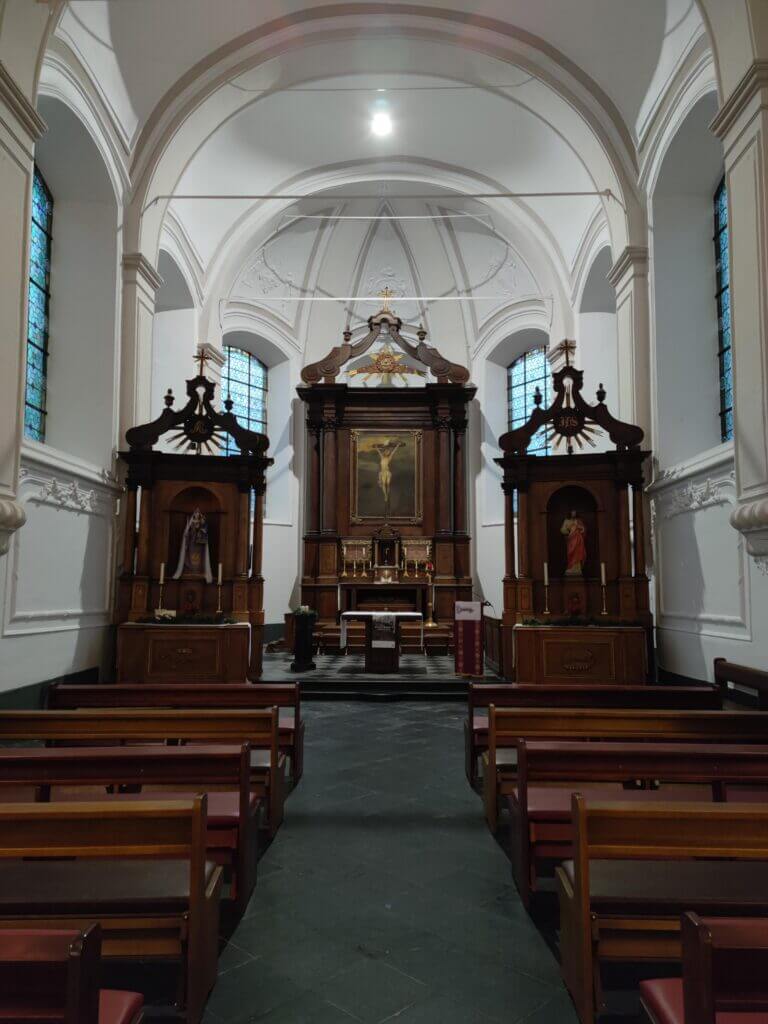 Justo frente al castillo está la pequeña iglesia de San Nicolás. Es pequeña, muy acorde con el tamaño de Durbuy. Se construyó en el siglo XVII y fue ampliada 150 años más tarde por los hermanos Agustinos Recoletos. Poco les duró el disfrute de su nuevo templo, pues algunos años más tarde fueron expulsados durante la Revolución Francesa. .