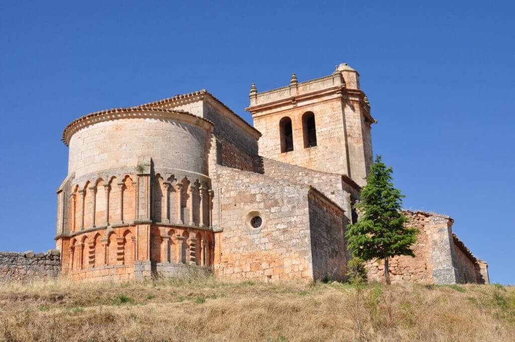 Nuestra primera parada la hicimos en este pequeño pueblo dominado por su iglesia de origen románico. Subimos hasta ella en coche, y aunque no pudimos entrar, si disfrutamos del paisaje que rodea el pueblo y del exterior del templo, declarado Bien de Interés Cultural con categoría de Monumento junto al conjunto de bodegas y casas de El Castro, el alto sobre la que está la iglesia.