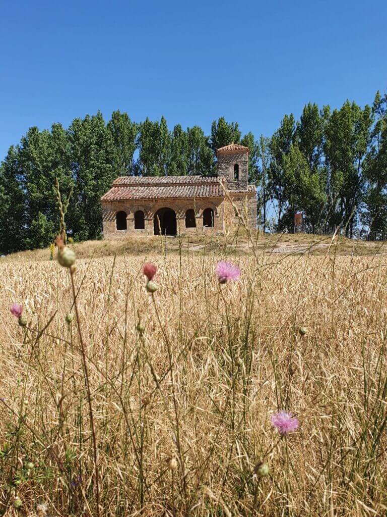 La siguiente parada en nuestro ruta por los lugares que ver en los alrededores de Lerma fue en la ermita de Santa Cecilia, patrona de los músicos. Para encontrarla hay que desviarse hacia Santibáñez del Val, a la derecha de la BU-901 (enlaza en un cruce con la BU-900 por la que nosotros circulábamos), y desde ahí seguir el camino que indica Ermita Mozárabe. Construida sobre una roca elevada, junto al río Mataviejas, este pequeño templo es una de las 21 ermitas mozárabes que se conservan en la Península Ibérica.