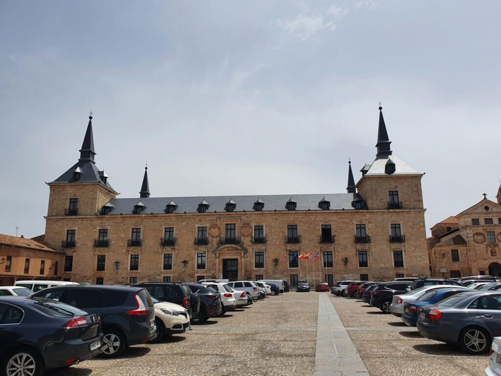 El palacio fue utilizado como cuartel general durante la invasión francesa, momento en el que perdió los cuatro chapiteles que coronaban las torres de sus esquinas. Fue restaurado hace unos años, pasando a formar parte de la red de Paradores de España. Nosotros entramos para ver el interior del edificio, pero solamente a las zonas abiertas a los que no están alojados. Pudimos disfrutar del fabuloso patio central rodeado de galerías en dos niveles.