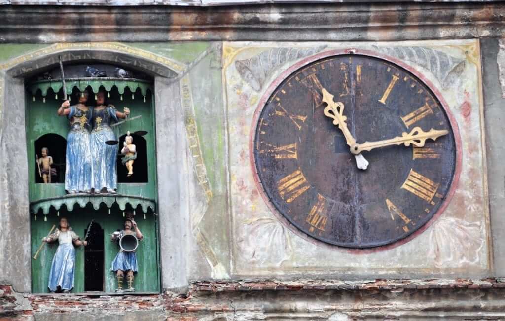 Nuestro paseo nos llevó hasta uno de los edificios más bonitos de la ciudad: la Torre del Reloj. En su momento fue la entrada principal a la ciudad y una de las catorce torres que tenía la fortaleza y de las que hoy solamente quedan nueve. Ubicada al este de la ciudadela, su altura es de 64 metros y es uno de los lugares más destacados que ver en Sighisoara. Si bien la torre data del siglo XIII, el reloj que la da nombre es del siglo XVII.