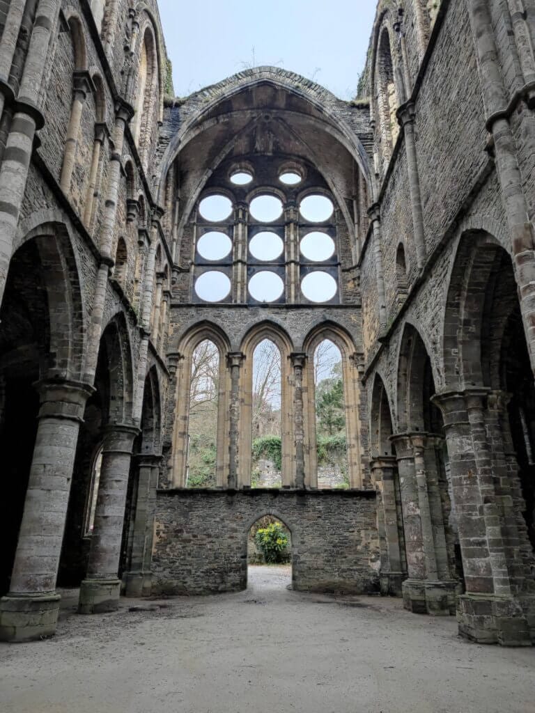 Por último, al final de todo el complejo, se encuentra el lugar más fascinante que se puede ver en la abadía de Villers-la-Ville. Su iglesia gótica, con muros que alcanzan los 90 metros de altura.