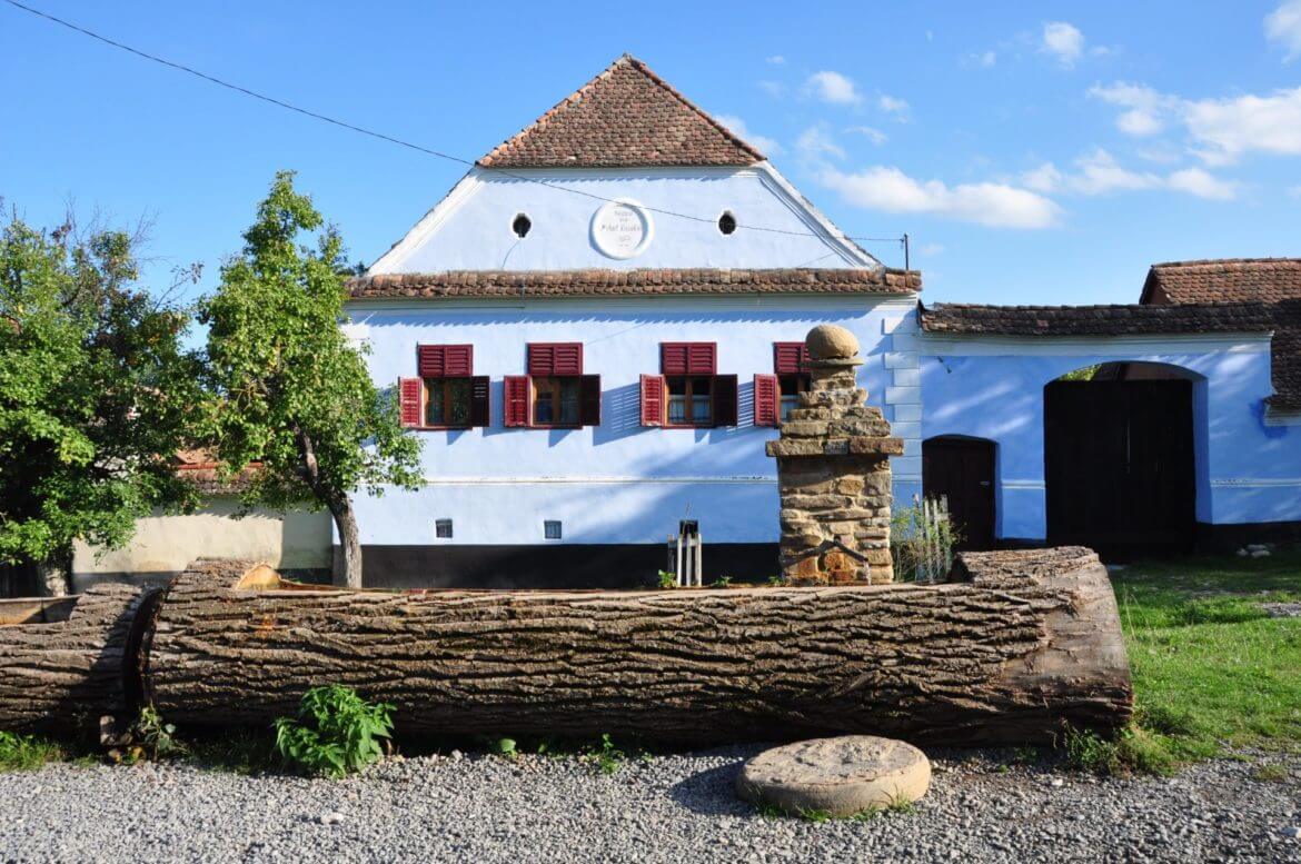 Todas las casas del pueblo son parecidas, cambian los colores y en algunas de ellas, en su fachada, se puede ver la fecha de sus construcción. En muchos casos las puertas de sus patios están abiertas. Dentro de algunos encontraréis tiendas de artesanía hecha en Viscri. En otras un café. Con suerte, también podréis ver trabajar al herrero o como funciona el horno de azulejos. Nosotros visitamos Viscri un domingo por la tarde y no conseguimos ver nada de eso.